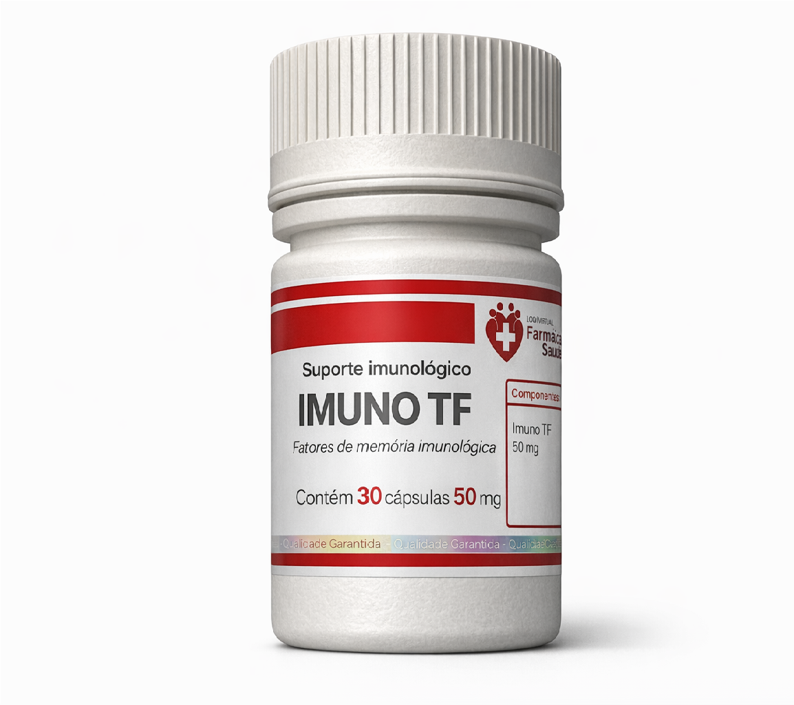 Imuno TF é um suplemento de suporte imunológico desenvolvido para ajudar o organismo a reconhecer e responder melhor a diferentes agentes invasores (como vírus, bactérias e fungos), atuando como reforço das defesas.